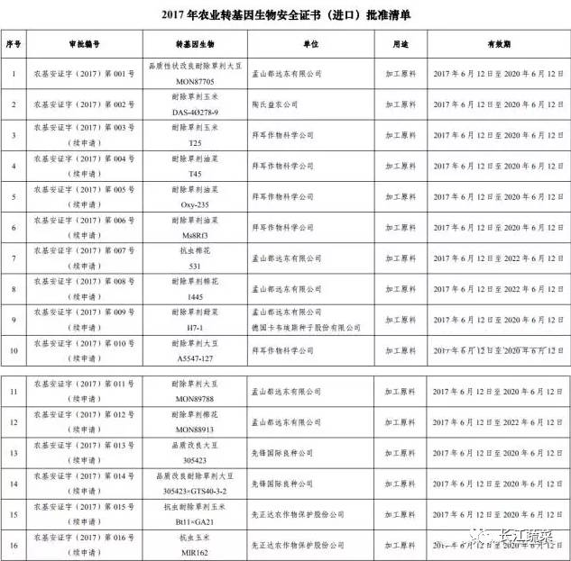 继6月批准进口16种转基因作物之后(其中14个是续申请的,2个是新获批的),7月,中国农业部再次发放2个转基因作物安全证书(进口),18种转基因作物用途皆为“加工原料”。