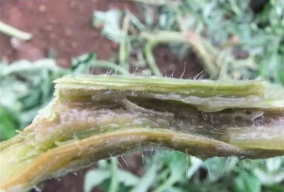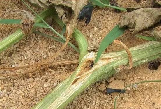 使用方法:喷药时,48%苯甲·嘧菌酯10克、3%中生菌素30克、50%丙森锌30克,5-7天/次,连续使用两次;对于开裂的茎蔓,可将上述三种药剂调成糊状,涂抹患处。