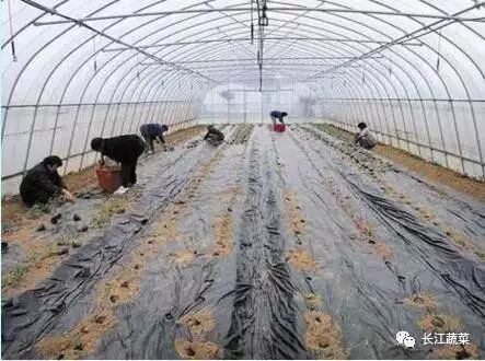 将地整平、整细。每667 m2施有机肥3000~5000 kg,石灰氮260~100 kg,均匀撒施,然后深翻25~30 cm。有机肥能提高和保持地温,使杀菌效果更好。作高低畦,使地膜与地面之间形成一个小空间,有利于提高地温。