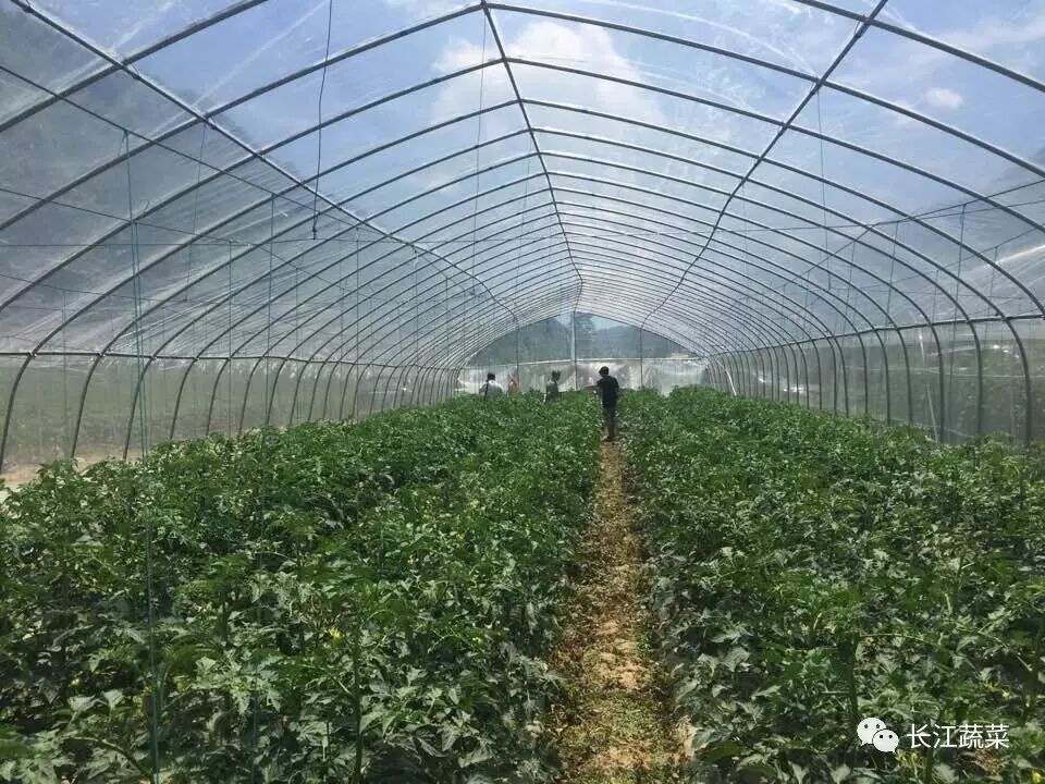栽培模式为高山番茄避雨延秋栽培。目前,宜昌市高山蔬菜基地面积有3.33万hm2,其中设施蔬菜面积占比较小,但设施化栽培呈现良好的发展态势,通过对高山蔬菜进行设施化栽培,创造优越的生长环境,达到减少农药、化肥使用量,提高单位产出率,从而解决高山蔬菜基地退耕还林和遏制土壤退化等环境治理问题。