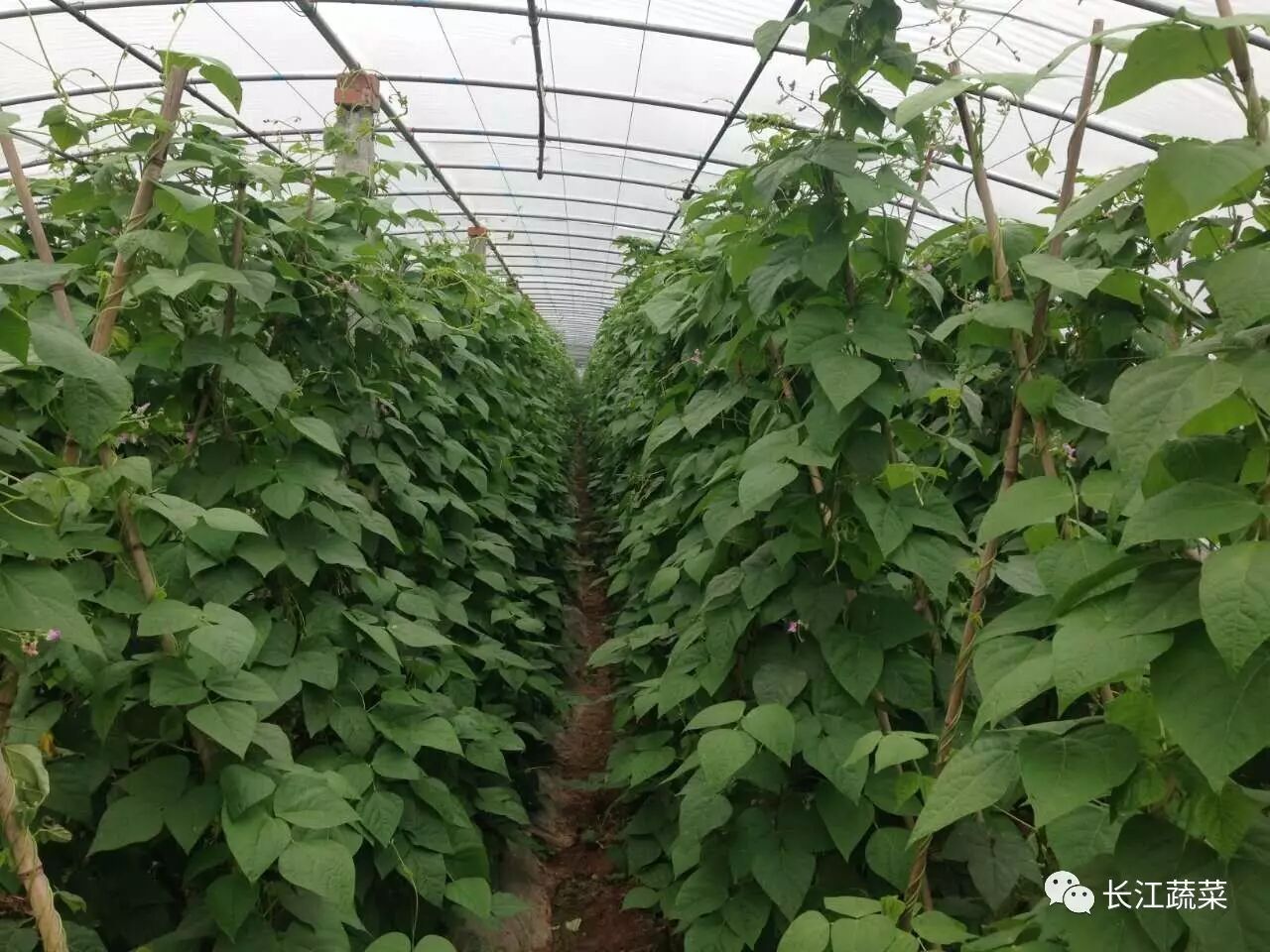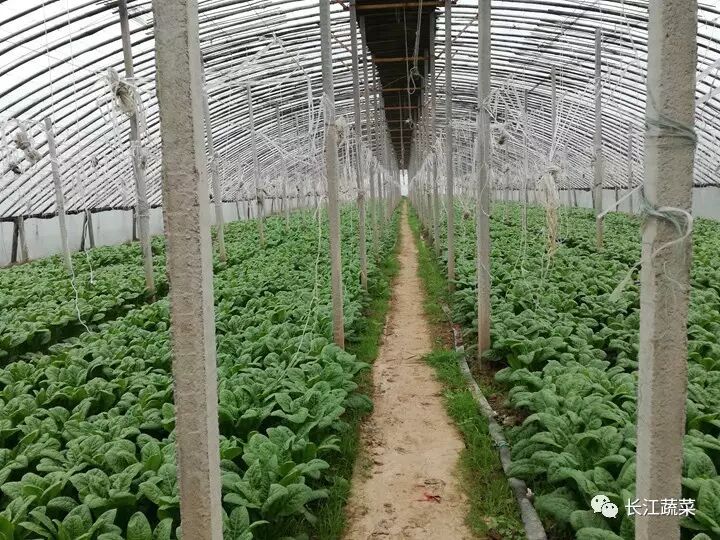 有2种棚型。棚型1:跨度8 m,顶高3.2 m,肩高1.6~1.7 m,长度根据田块长度而定,30~80 m,棚间距1.0~1.5 m,裙膜通风。