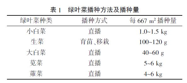 选择夏季生长势强、耐高温、产量高、品质优、抗病性强、适合当地市场的绿叶菜,本地区主要包括小白菜、生菜、大白菜、苋菜和蕹菜。