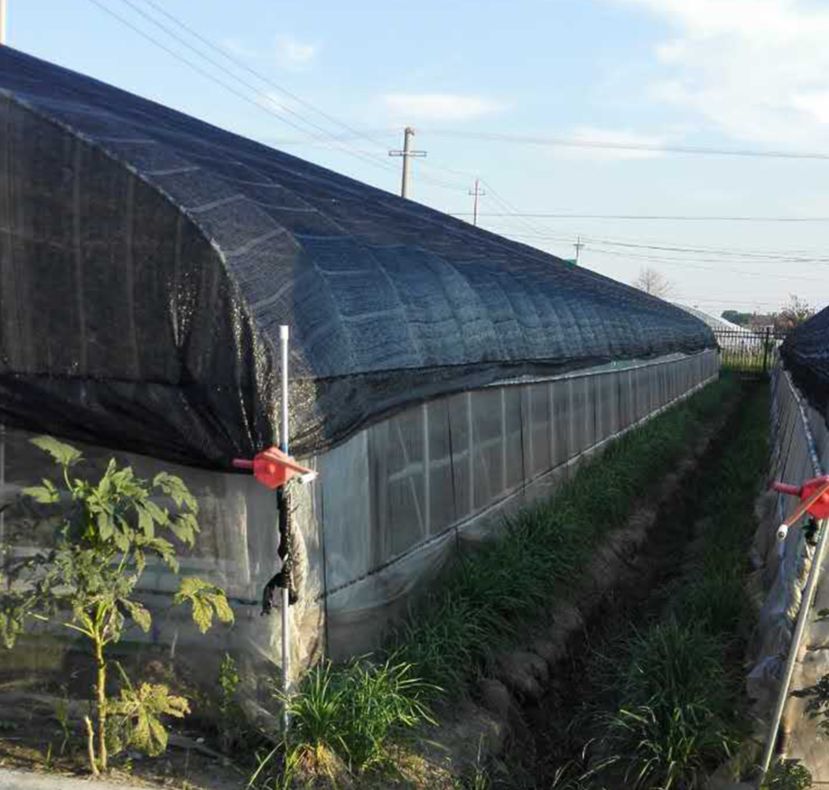 在高温强光季节,根据绿叶菜种类和天气变化,严格控制盖网时间,既保证绿叶菜的正常光合作用,又避免高温强光对绿叶菜的伤害。采用遮光率为50%的12目黑色或银灰色网覆盖于钢架棚体上,覆盖方式有大棚顶覆盖和平棚覆盖。